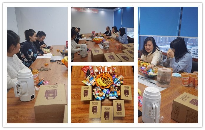 集團同事以茶話會的形式慶祝周年,大家意興盎然,喝著熱飲,吃著點心,聊著近況,歡樂滿滿。